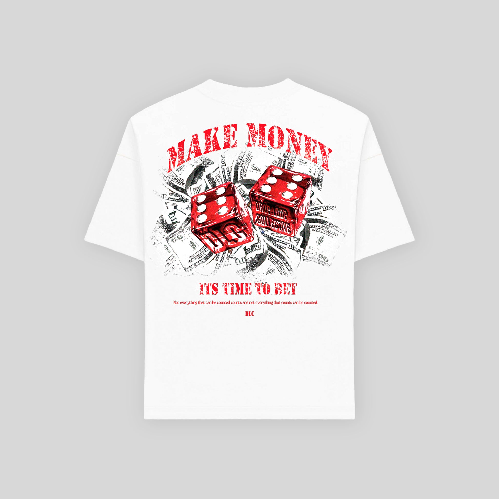 La Camiseta Fortune de DropLoop Collective apuesta por una gráfica potente con dados en rojo que representan riesgo y ambición. Oversize cropped en single jersey 240 gsm, confeccionada en 100 % algodón orgánico hilado y peinado para un tacto suave y una superficie uniforme.